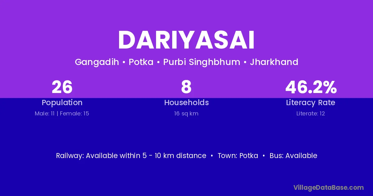Potka is the nearest town to Dariyasai village for major economic activities