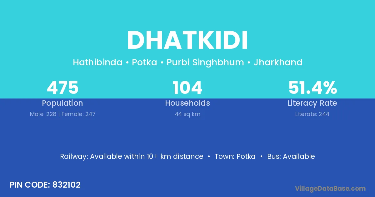 Potka is the nearest town to Dhatkidi village for major economic activities