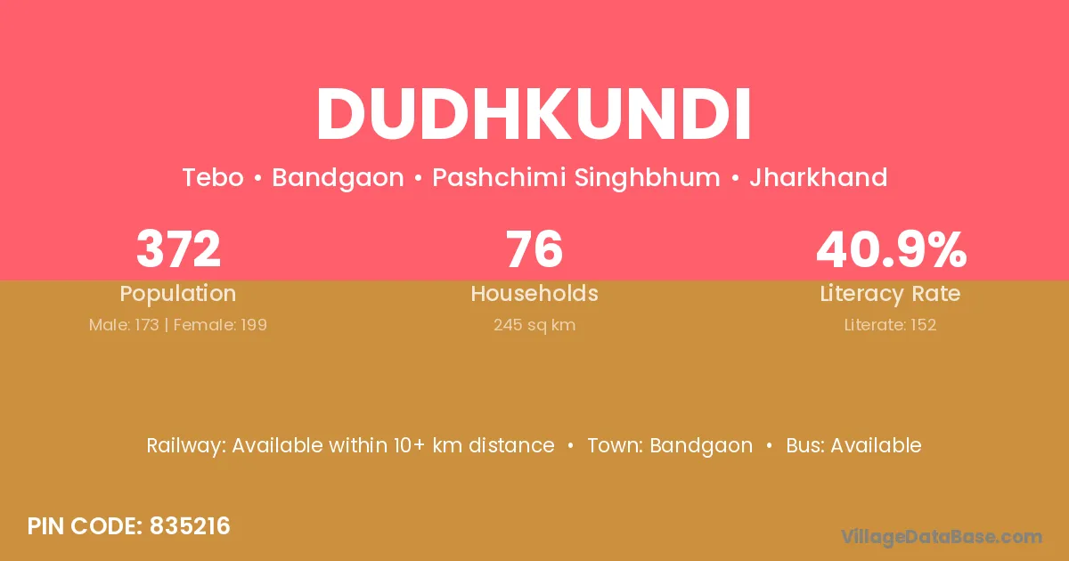 According to Census 2011 information, the village code of Dudhkundi village is 832102.