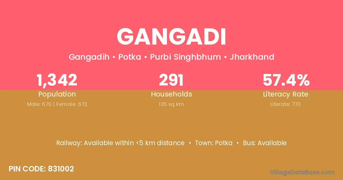 According to Census 2011 information, the village code of Gangadi village is 831002.