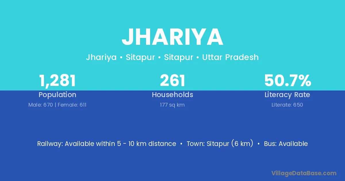 Jhariya village has a total population of 1,088 people, of which 557 are males and 531 are females.