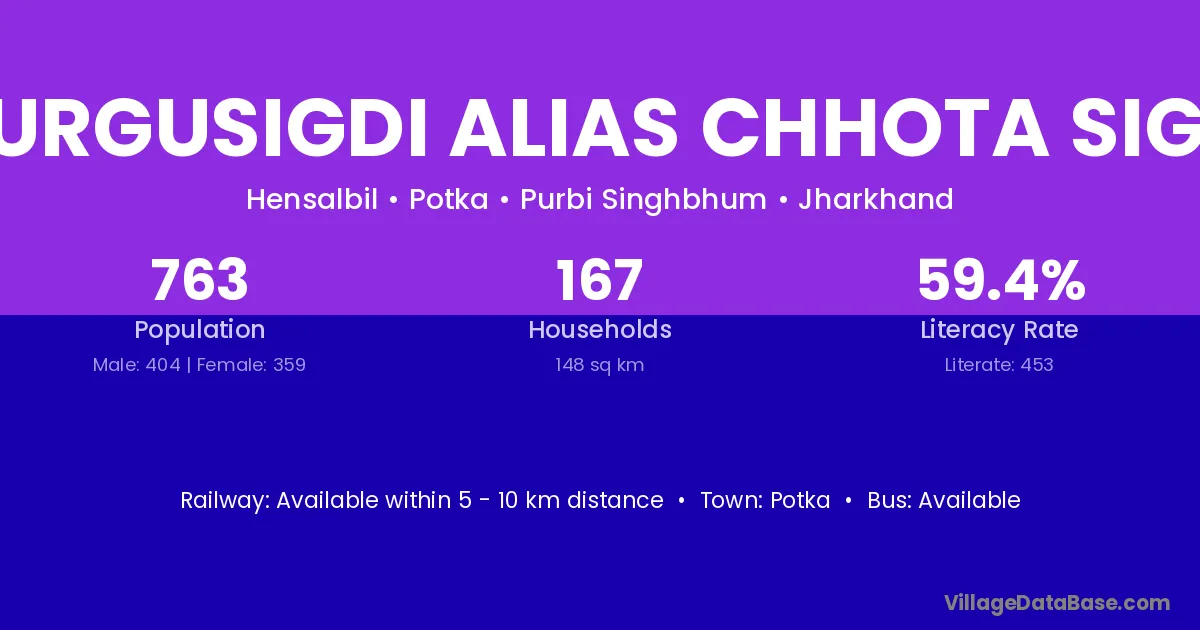 Jurgusigdi Alias Chhota Sigd village has a total population of 763 people, of which 404 are males and 359 are females.