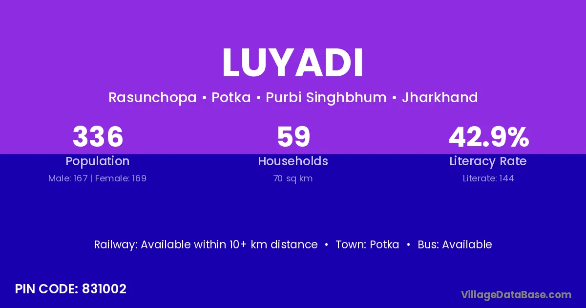 Luyadi village has a total population of 336 people, of which 167 are males and 169 are females.