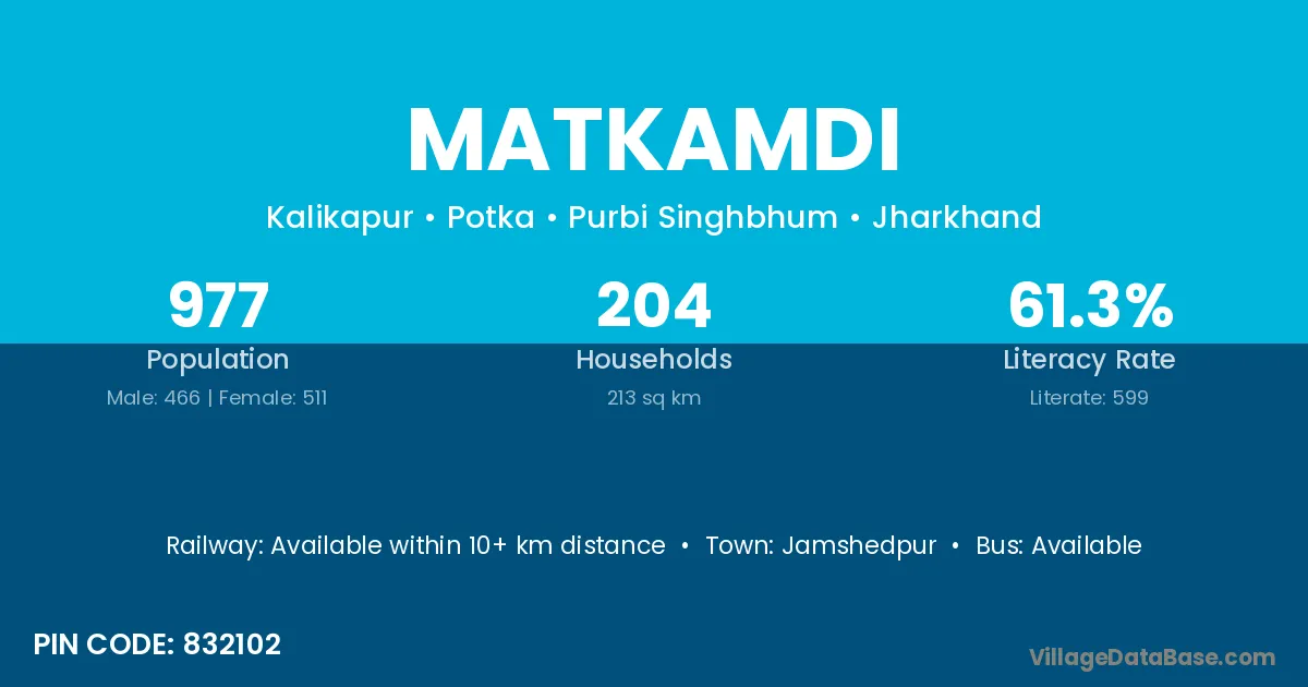 Jamshedpur is the nearest town to Matkamdi village for major economic activities