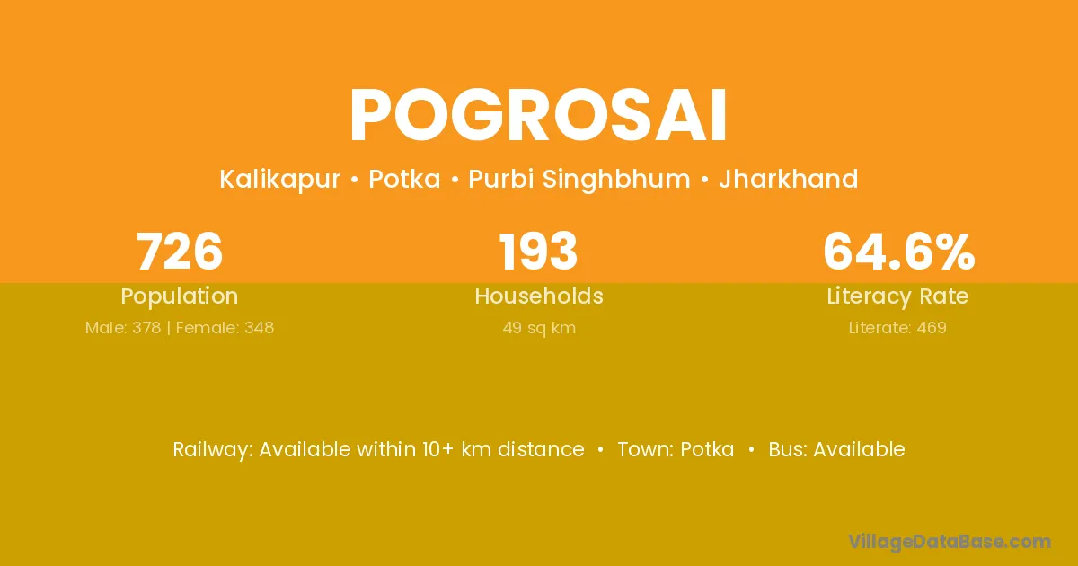 Pogrosai village is located in the Potka Subdivision of the Purbi Singhbhum district in Jharkhand .
