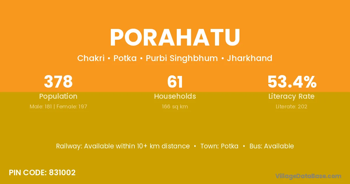 Porahatu village has a total population of 378 people, of which 181 are males and 197 are females.