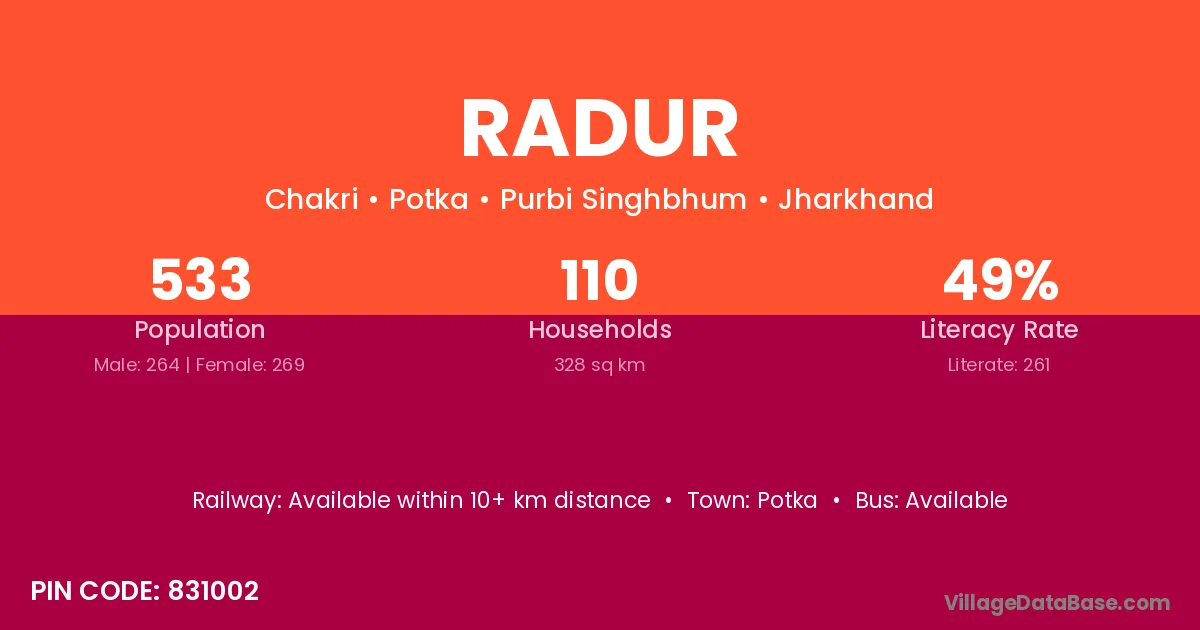 According to Census 2011 information, the village code of Radur village is 831002.