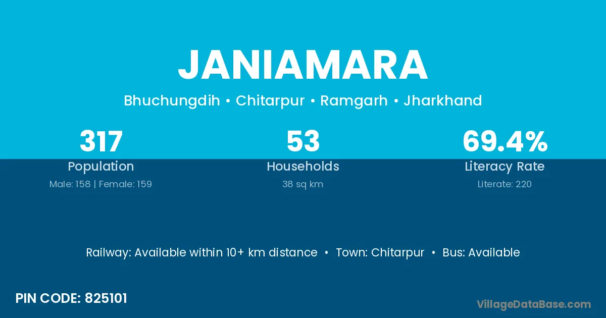 Janiamara village has a total population of 317 people, of which 158 are males and 159 are females.