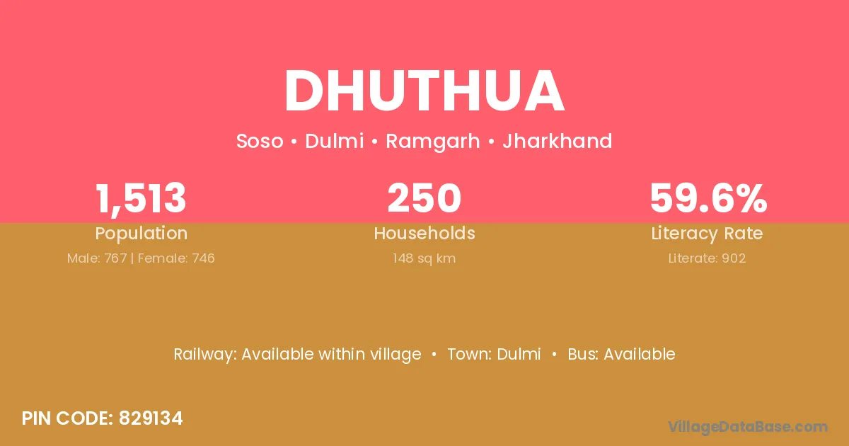 Dhuthua village has a total population of 1,513 people, of which 767 are males and 746 are females.
