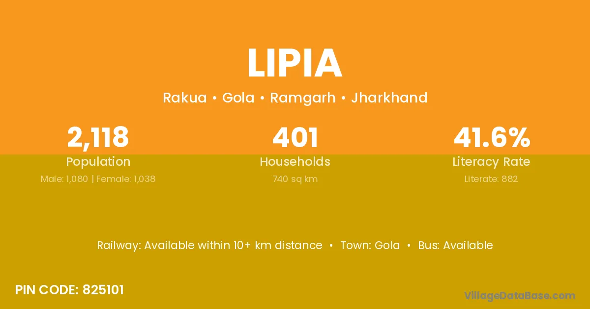 Lipia village is located in the Gola Subdivision of the Ramgarh district in Jharkhand .