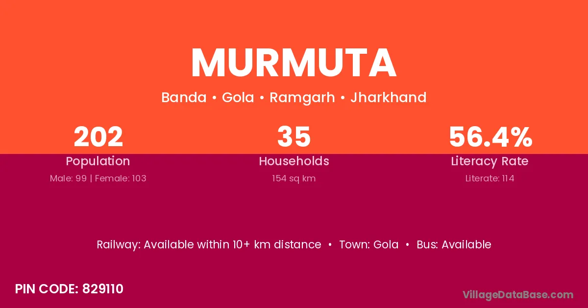 Murmuta village has a total population of 202 people, of which 99 are males and 103 are females.