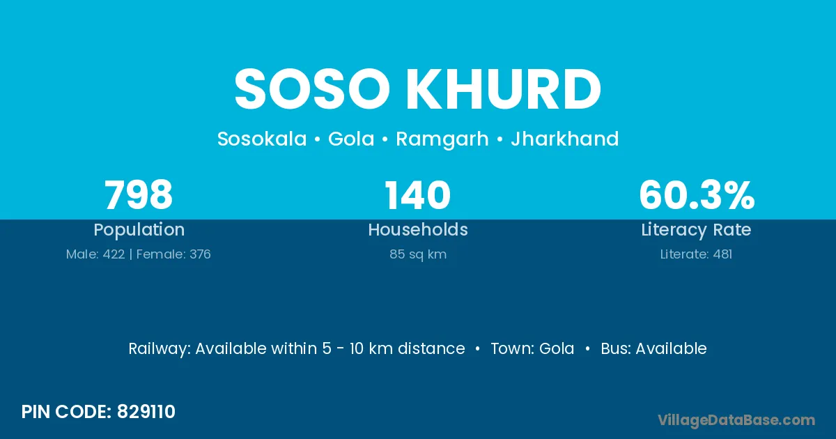 According to Census 2011 information, the village code of Soso Khurd village is 829110.