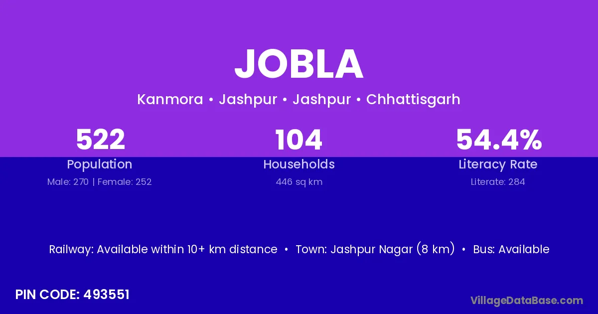According to Census 2011 information, the village code of Jobla village is 829101.