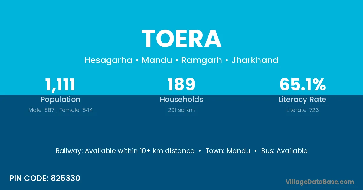 According to Census 2011 information, the village code of Toera village is 825330.
