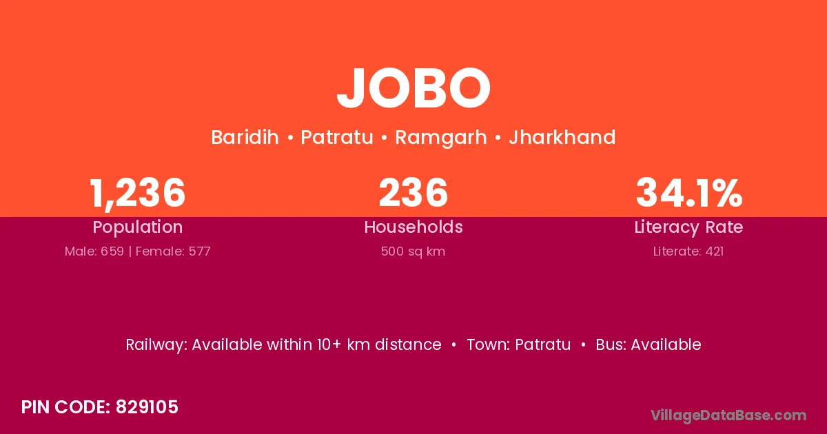 Patratu is the nearest town to Jobo village for major economic activities