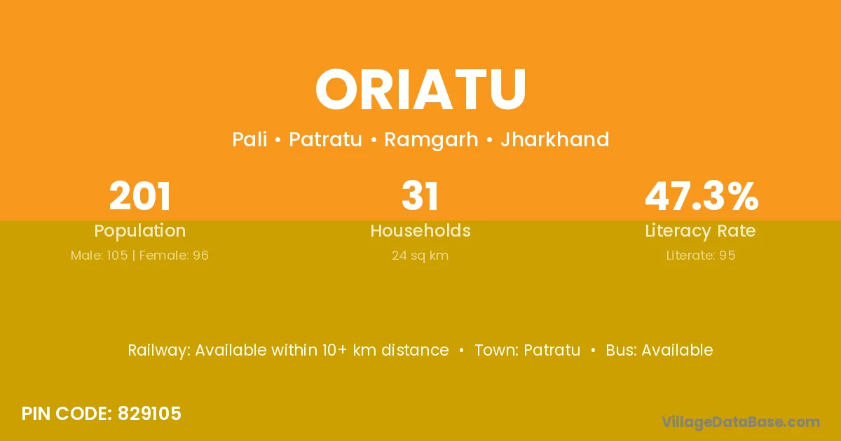 Oriatu village has a total population of 201 people, of which 105 are males and 96 are females.