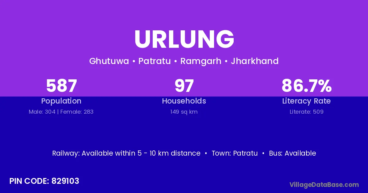 Patratu is the nearest town to Urlung village for major economic activities
