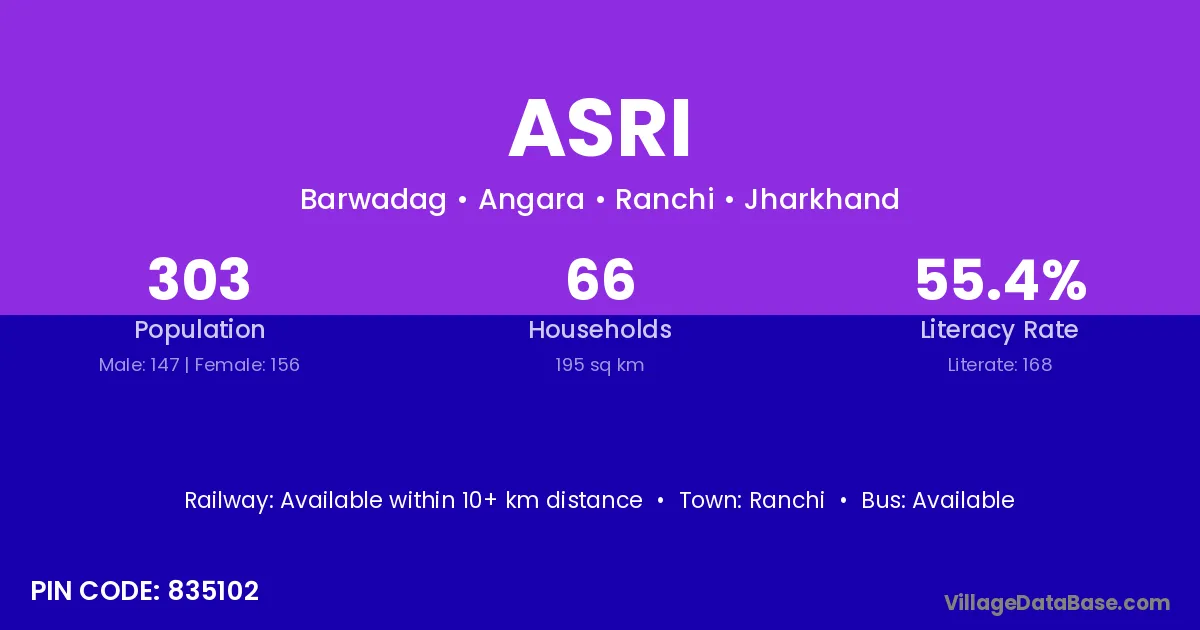 Ranchi is the nearest town to Asri village for major economic activities