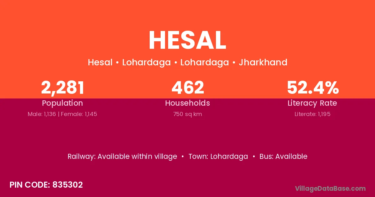 Ranchi is the nearest town to Hesal village for major economic activities