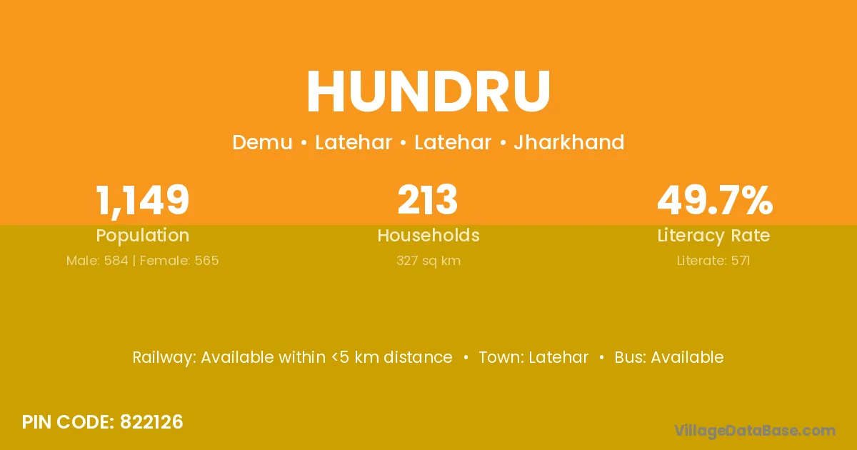 According to Census 2011 information, the village code of Hundru village is 835219.