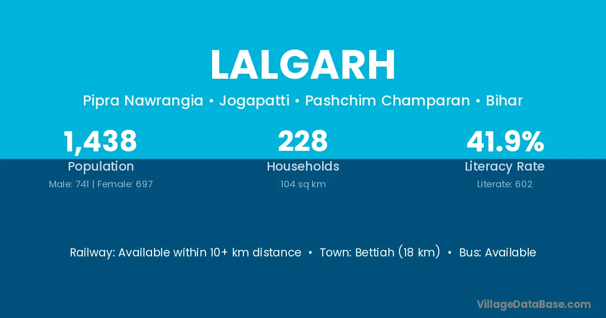 According to Census 2011 information, the village code of Lalgarh village is 835101.