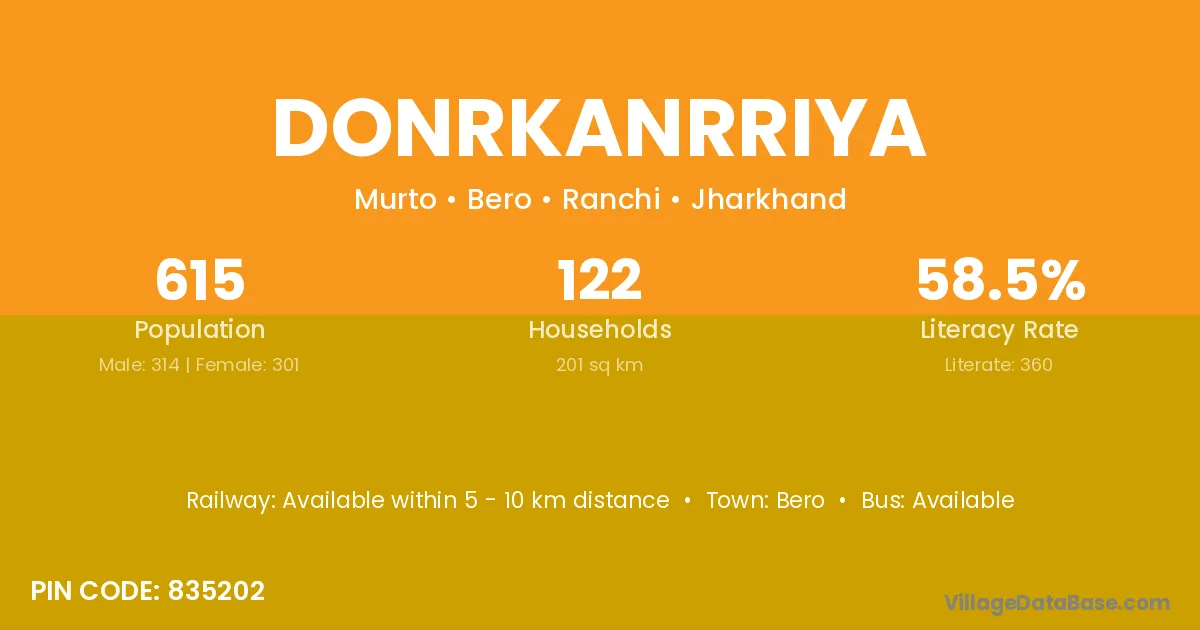 According to Census 2011 information, the village code of Donrkanrriya village is 835202.