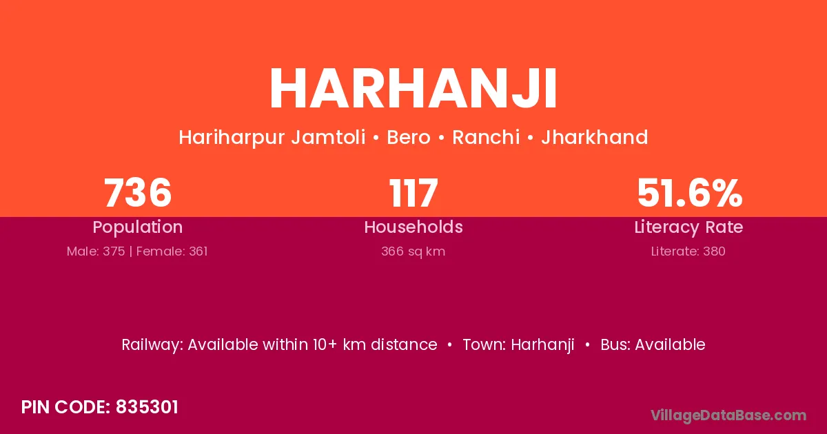 Harhanji village has a total population of 736 people, of which 375 are males and 361 are females.