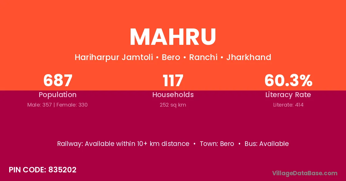 Mahru village is located in the Bero Subdivision of the Ranchi district in Jharkhand .