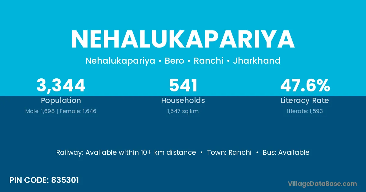 Ranchi is the nearest town to Nehalukapariya village for major economic activities