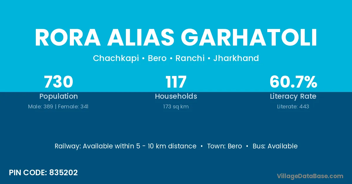 Rora Alias Garhatoli village has a total population of 730 people, of which 389 are males and 341 are females.