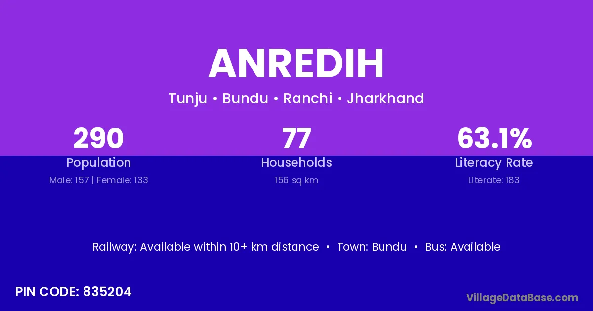 According to Census 2011 information, the village code of Anredih village is 835204.