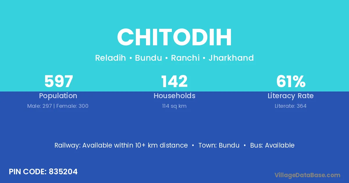 Bundu is the nearest town to Chitodih village for major economic activities