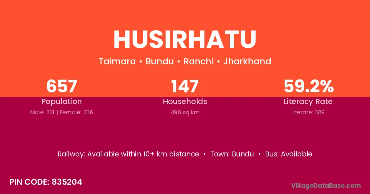 According to Census 2011 information, the village code of Husirhatu village is 835204.