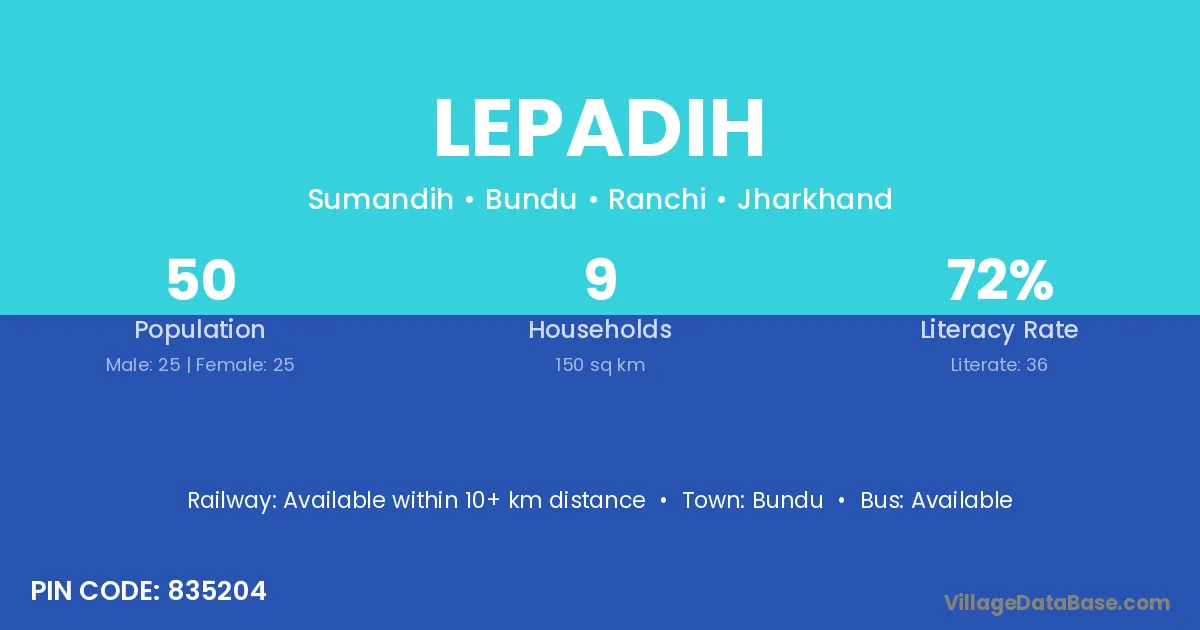 According to Census 2011 information, the village code of Lepadih village is 835204.