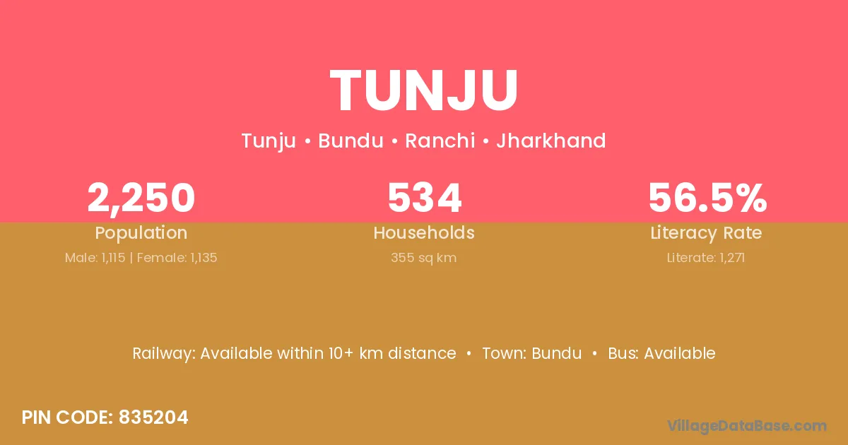 According to Census 2011 information, the village code of Tunju village is 835204.