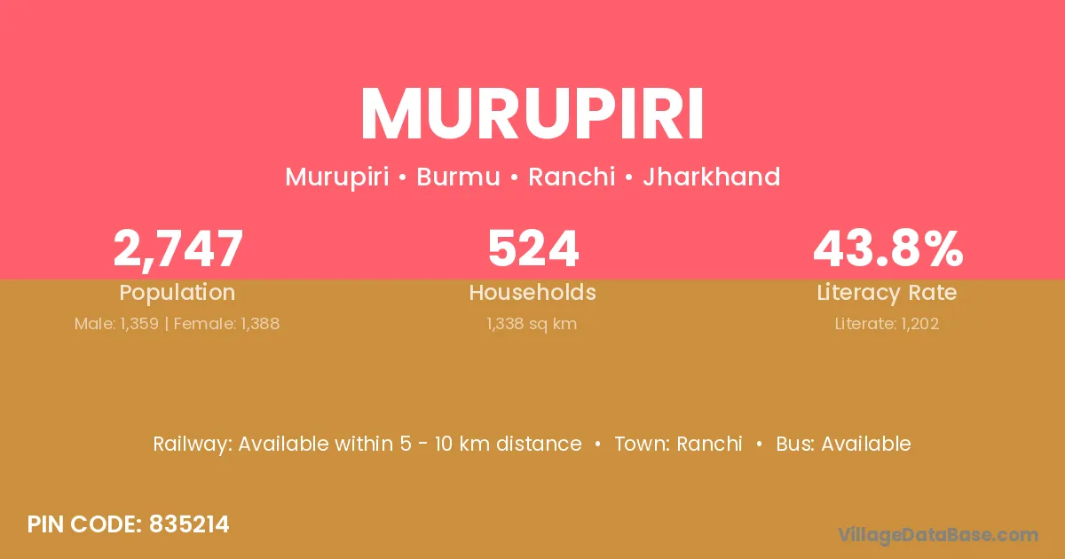 Ranchi is the nearest town to Murupiri village for major economic activities