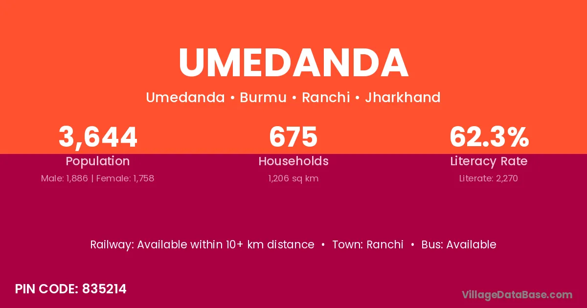 Ranchi is the nearest town to Umedanda village for major economic activities