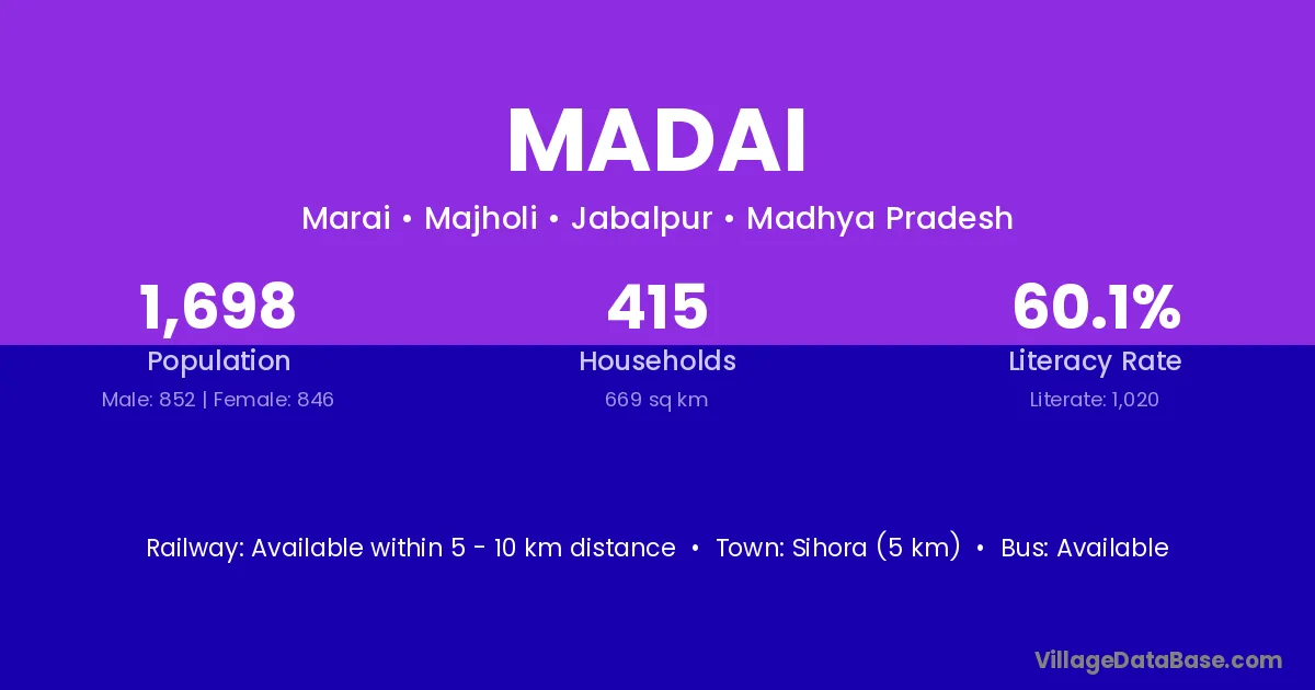 According to Census 2011 information, the village code of Madai village is 835301.