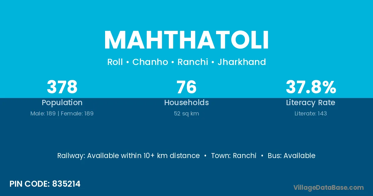 Mahthatoli village has a total population of 378 people, of which 189 are males and 189 are females.