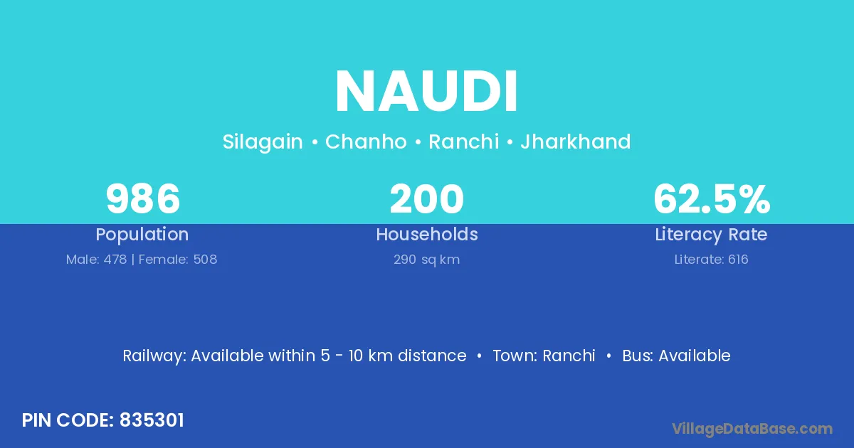 Naudi village has a total population of 986 people, of which 478 are males and 508 are females.