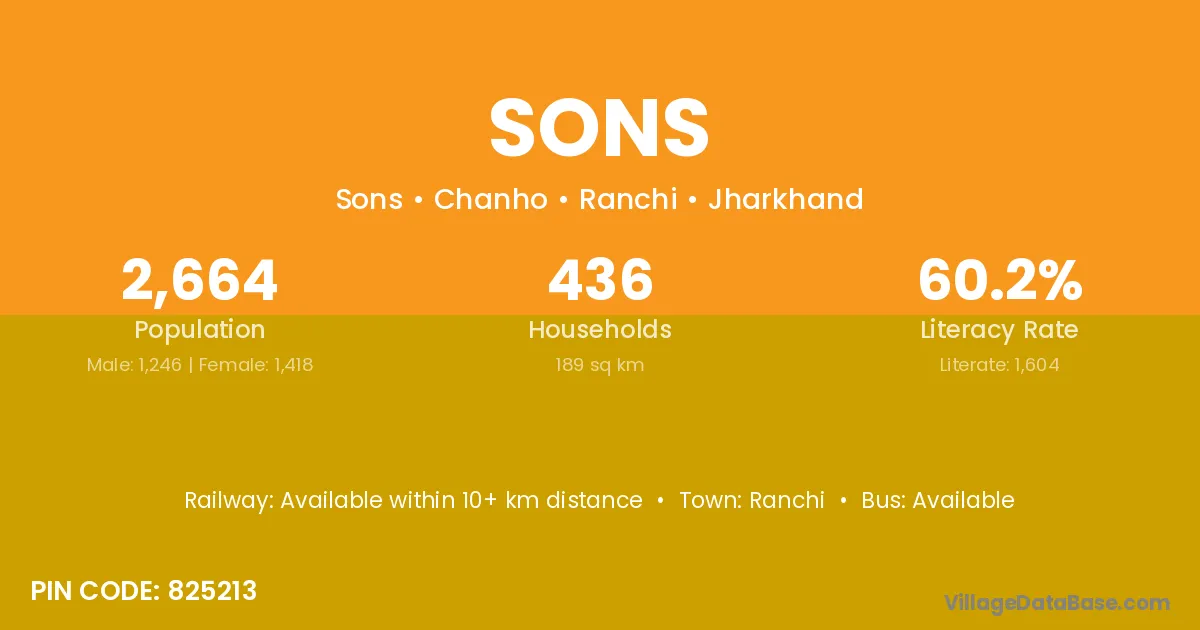 Sons village is located in the Chanho Subdivision of the Ranchi district in Jharkhand .
