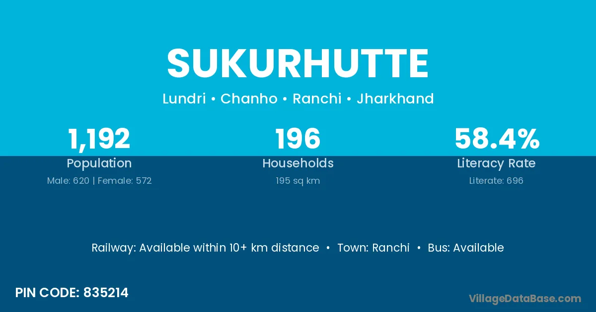 Ranchi is the nearest town to Sukurhutte village for major economic activities
