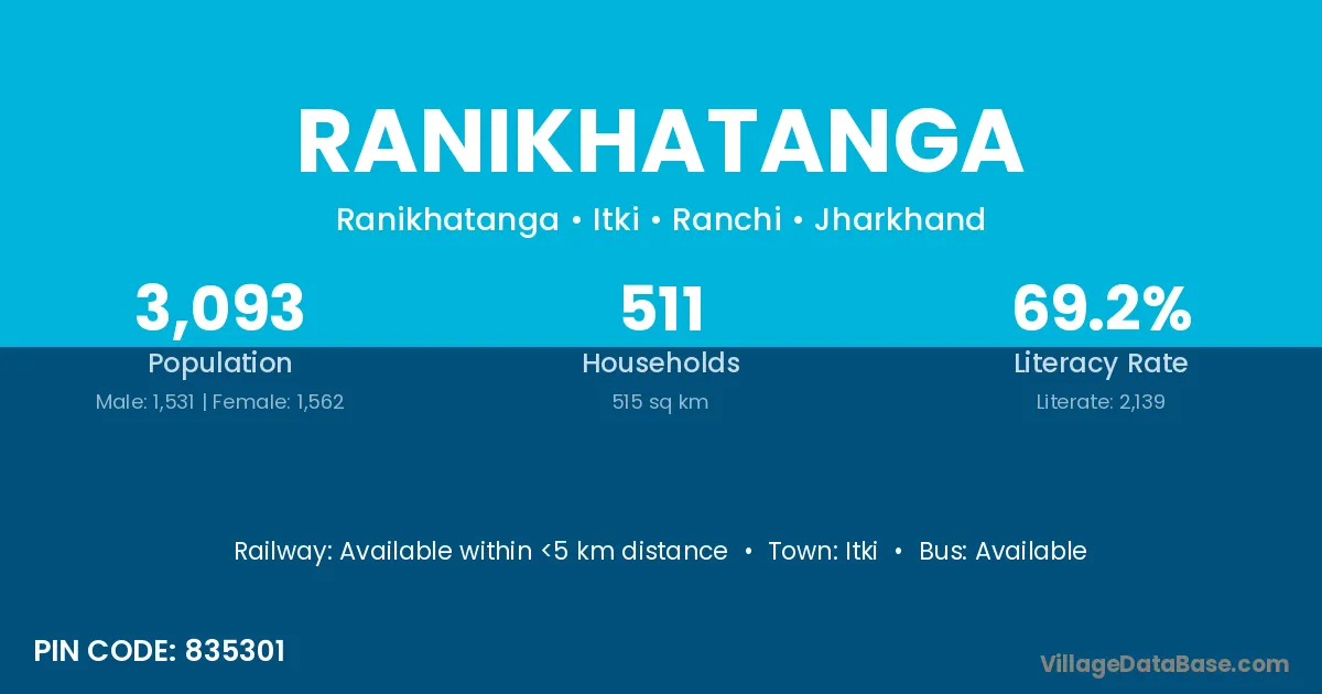 Itki is the nearest town to Ranikhatanga village for major economic activities