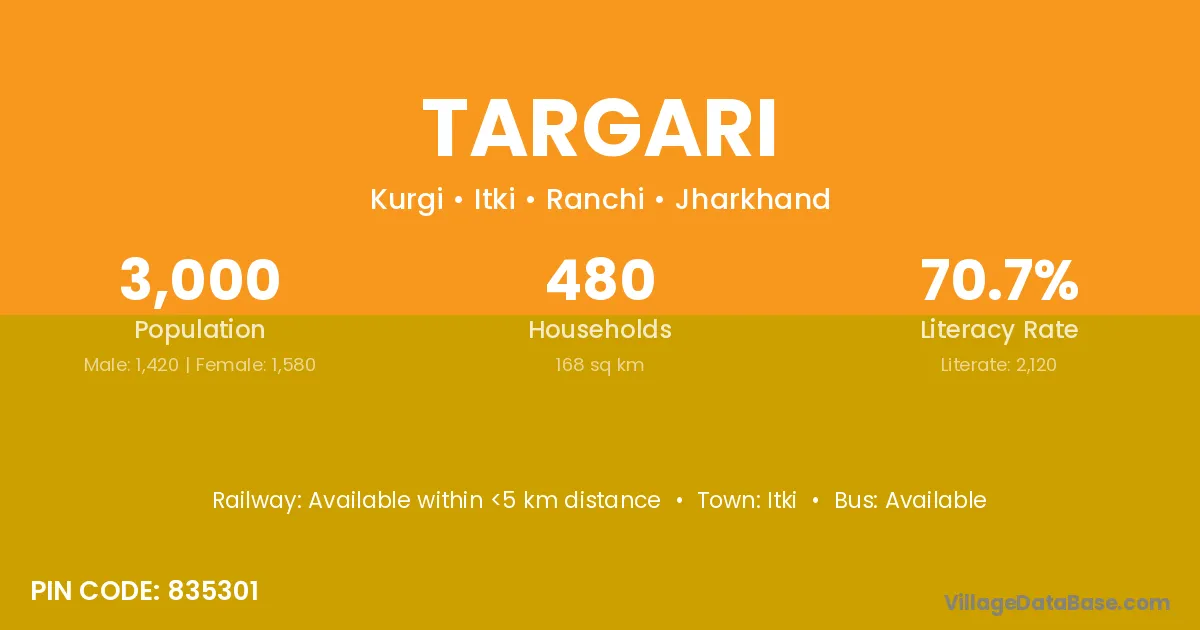 Targari village has a total population of 3,000 people, of which 1,420 are males and 1,580 are females.
