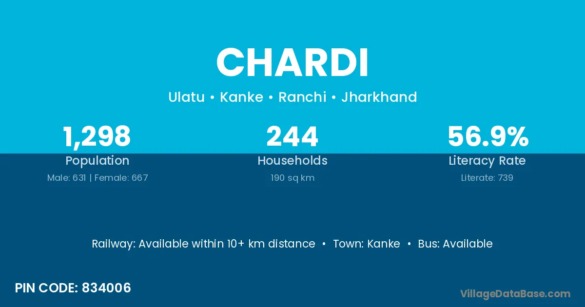 Kanke is the nearest town to Chardi village for major economic activities