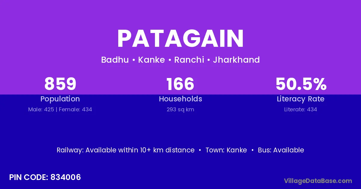 Kanke is the nearest town to Patagain village for major economic activities