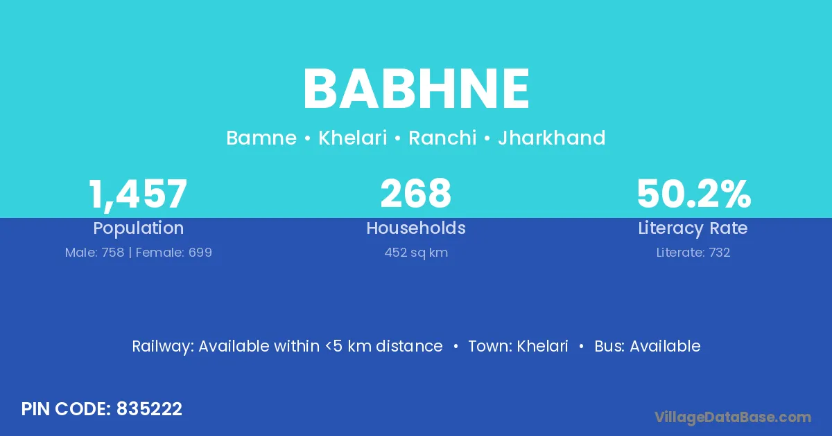Babhne village has a total population of 1,457 people, of which 758 are males and 699 are females.