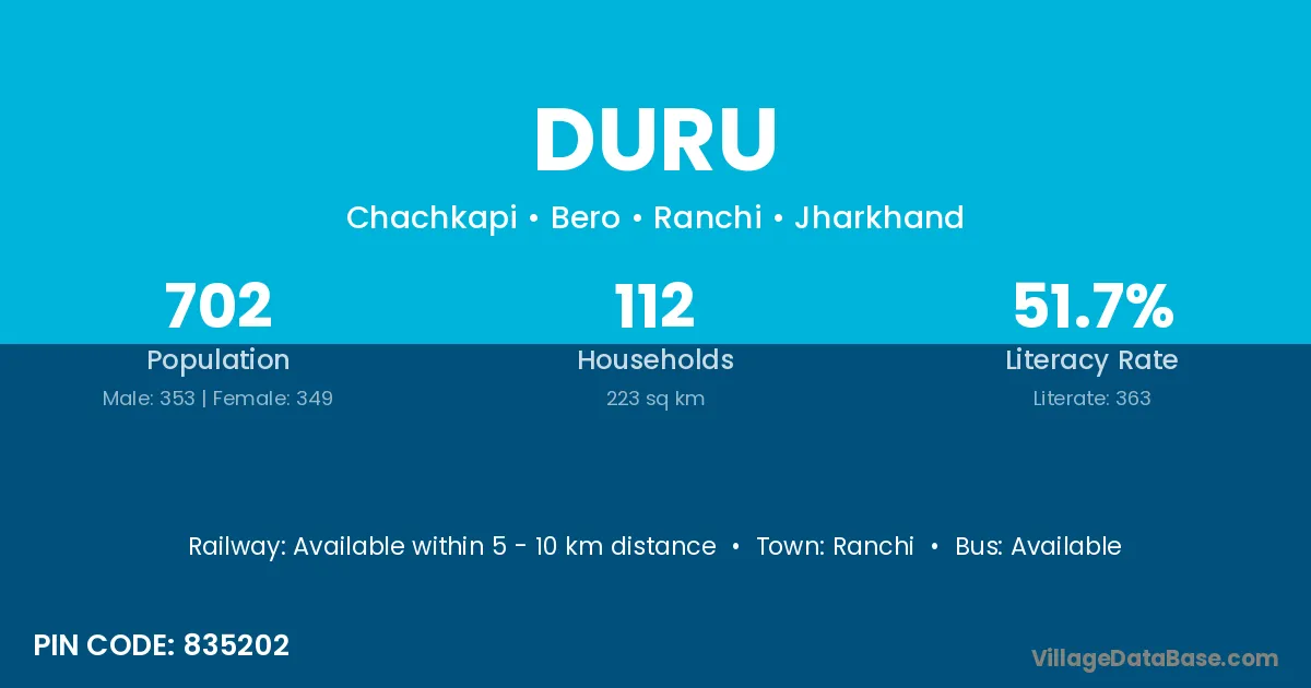 Ranchi is the nearest town to Duru village for major economic activities
