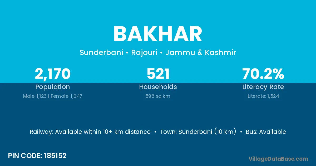 Bakhar village has a total population of 519 people, of which 262 are males and 257 are females.