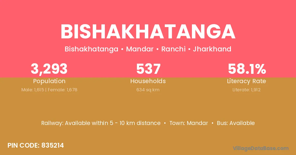 Bishakhatanga village has a total population of 3,293 people, of which 1,615 are males and 1,678 are females.